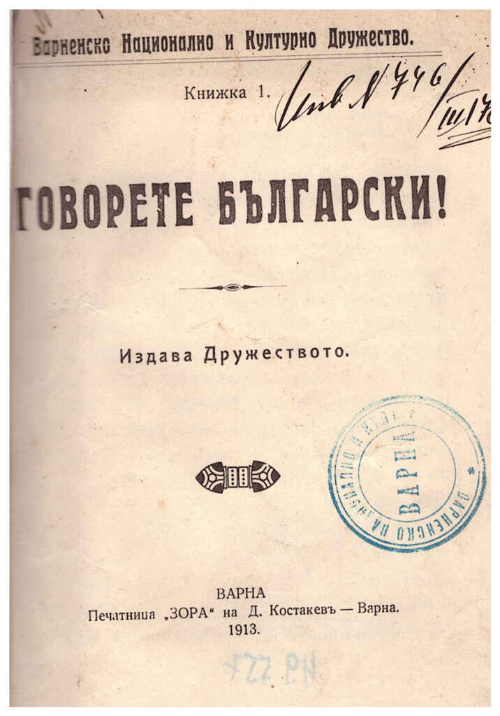 През същата година е основано Варненското национално и културно дружество, чийто председател е Александър Василев. Дружеството отпечатва брошура в тираж 1000 екземпляра с призива “Говорете Български!”, оформена като малка книжка с 14 страници. В нея четем: