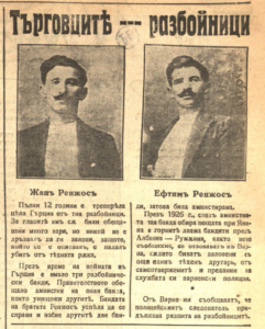 Търговците – разбойници : Жан Ренжос и Ефтим Ренжос. // Зора, X, N 2800, 1 ноем. 1928, с. 1. : със сн.